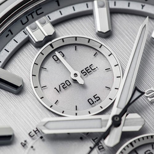 Az új Astron GPS Solar modellek, mint például az SSH159J1 is, mégis teljes egészében ezüst színű és erősen strukturált számlappal készülnek, illeszkedve az Astron megjelenés sajátosságaihoz.