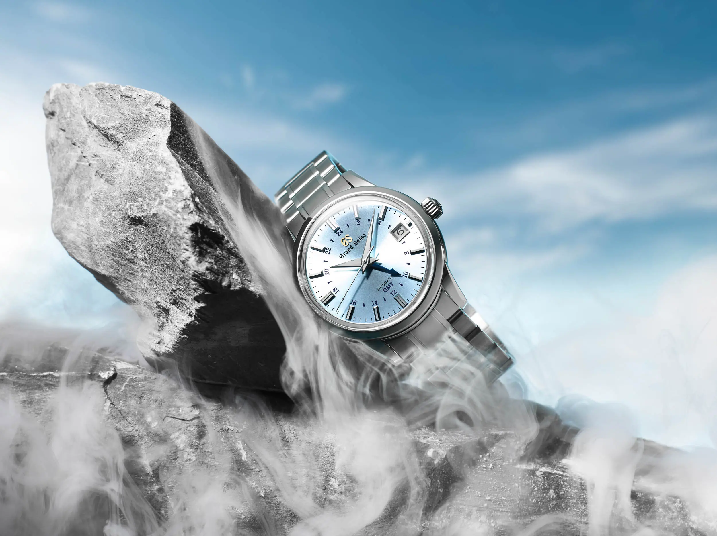 Ez a modell a Grand Seiko Elegance Collection sorozatát színesíti, szó szerint. A legszembetűnőbb rajta a színe, amelynek saját története is van, a Grand Seiko Shizukuishi stúdiójának ablakaiból látható Iwate hegy feletti tiszta, kék égbolt inspirálta.