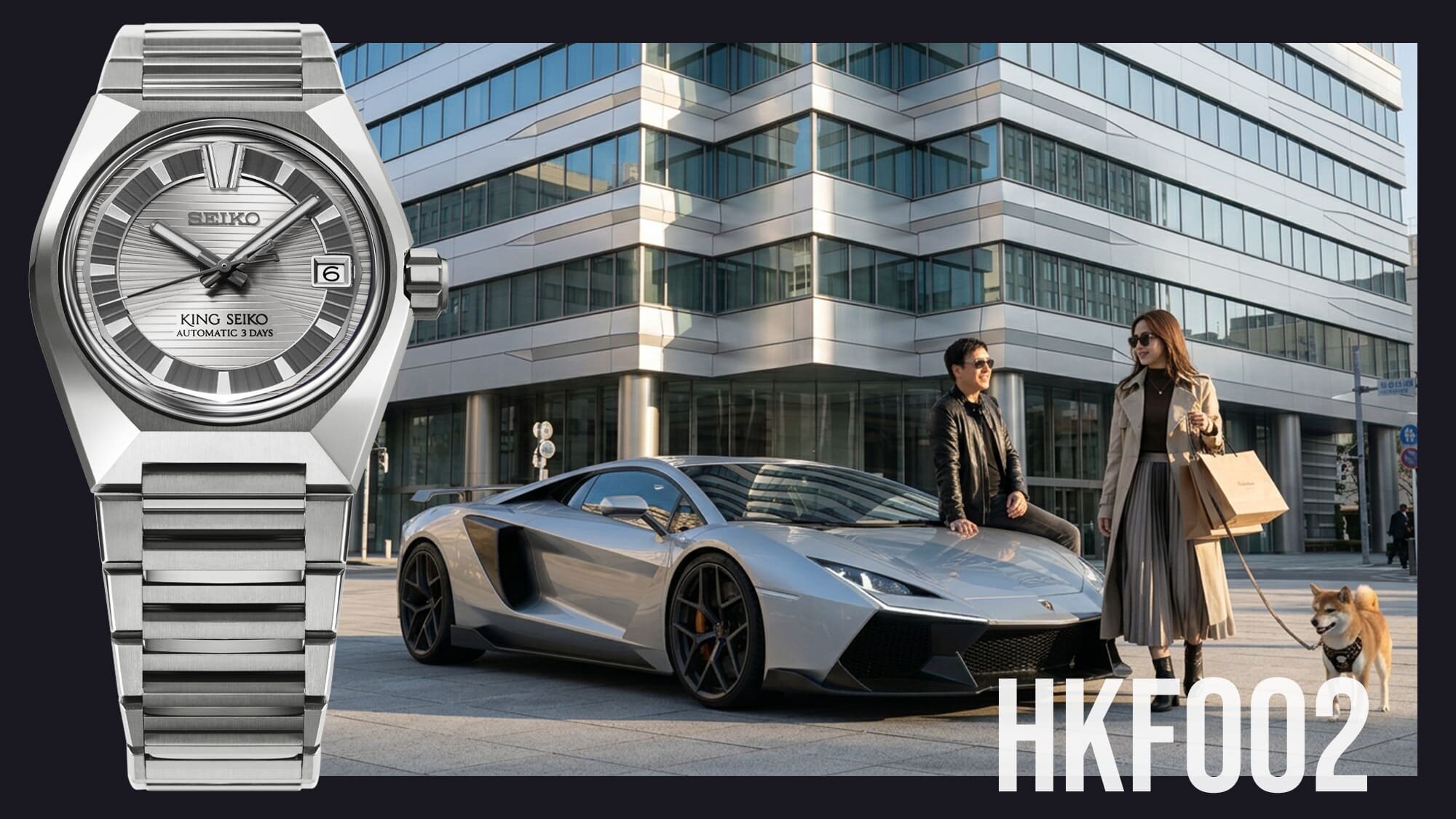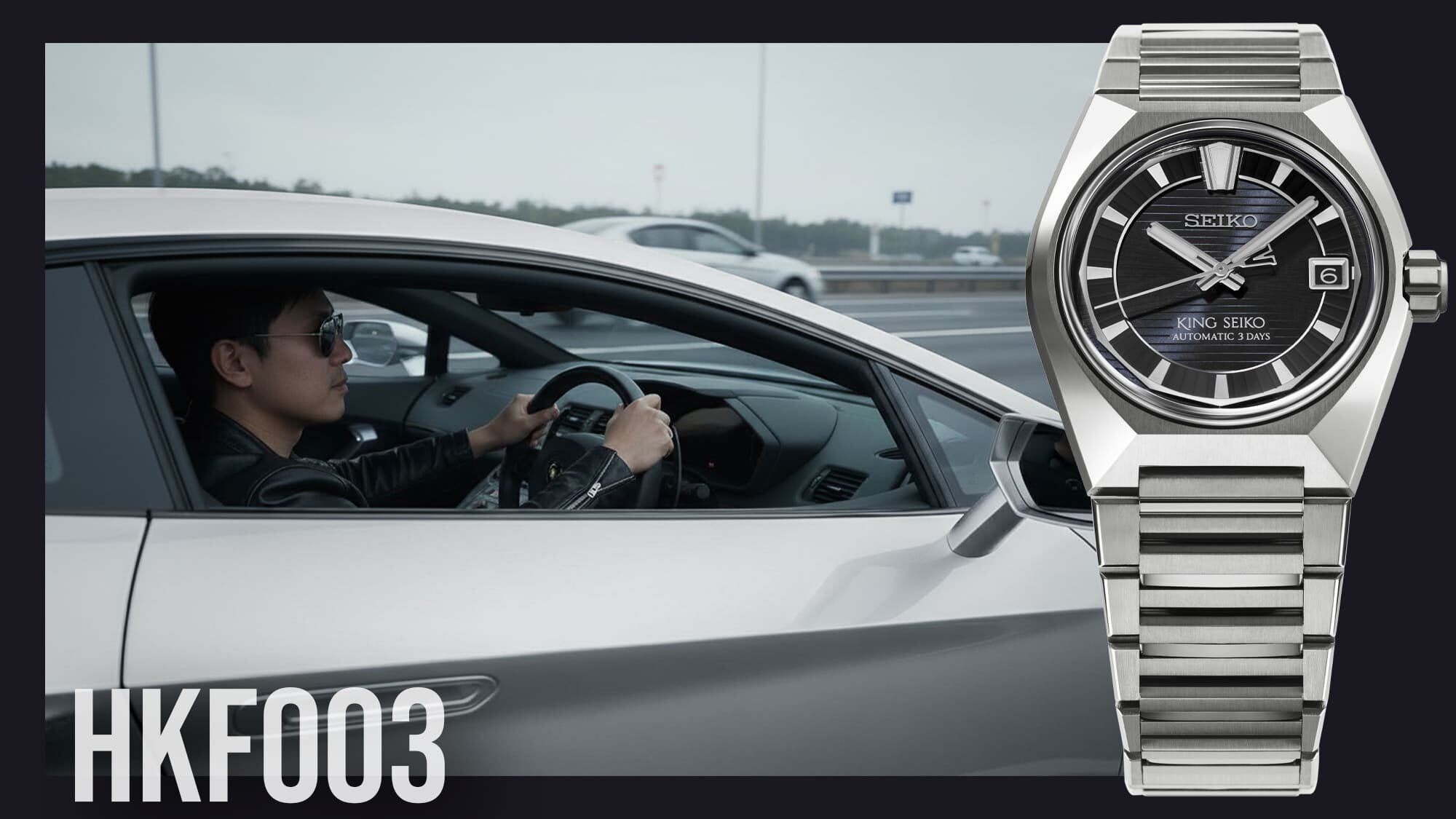 A HKF002J1 modell az ezüst árnyalatait vonultatja fel világostól a sötétig. teret adva a fényeknek és árnyékoknak, és jól kihasználva az egyenes felületek találkozásait a tok geometrikus formáin, ahol a ráeső fénytől függően más és más színben látjuk ugyanazt az anyagot.