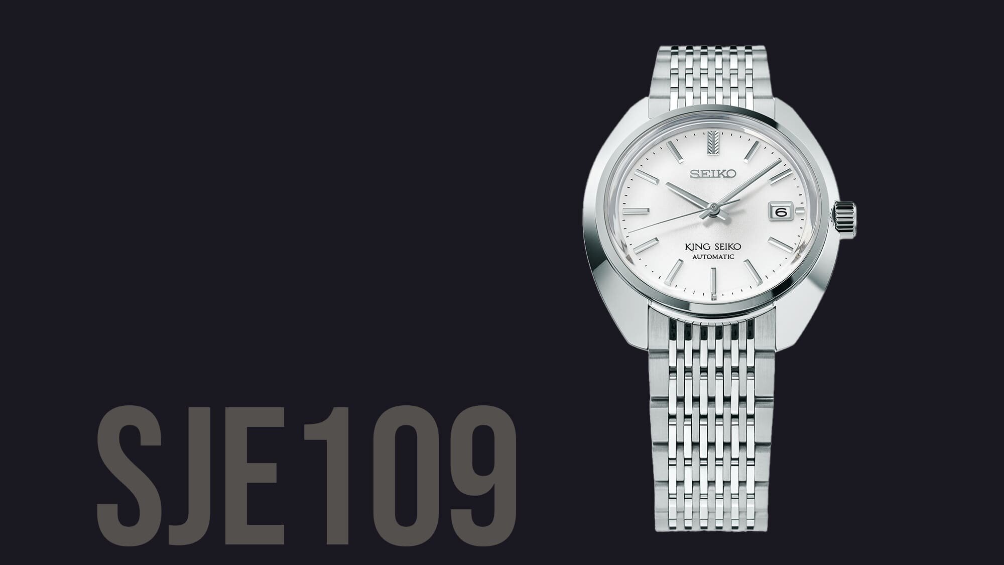 Az SJE109J1 modell egy klasszikus ezüstfehér számlapot kapott, amely szín annak a Tokiónak a mai, modern mindennapjait mutatja be, ahol a King Seiko született 1961-ben.