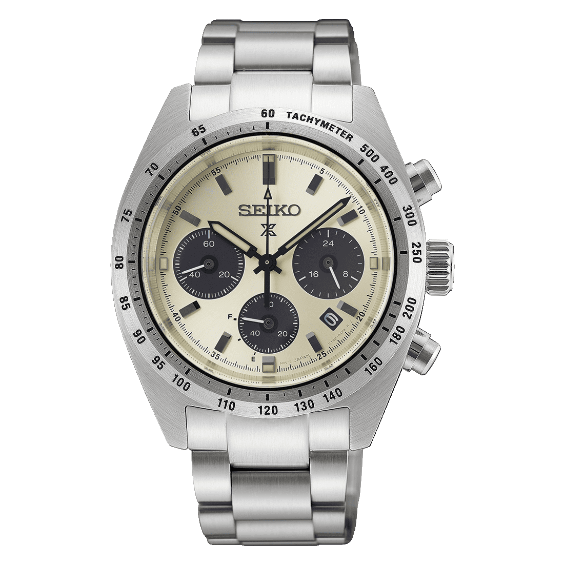 A legszembetűnőbb eleme a számlap színe, amely egy nem mindennapi árnyalat a sportos órák világában. A krém szín nem összekeverendő a bézs barnás árnyalatával, ez egy sárgásfehér tónus, ami a klasszikus sportautók között egy elegánsabb, mégis sportos vonalat képviselt, éppúgy, ahogy a Speedtimer SSC959P1 is teszi ezt a Prospex modelljei között.