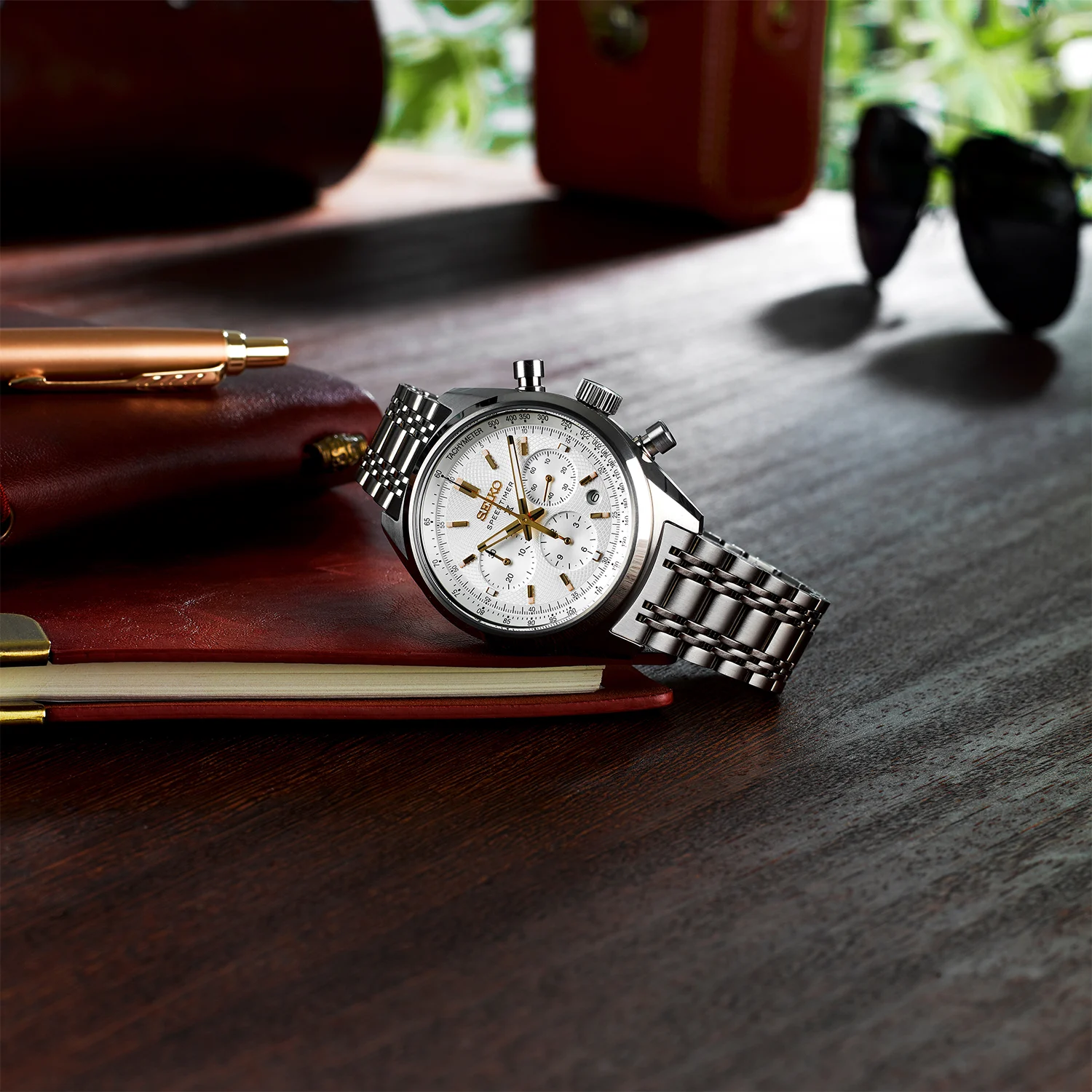 Érdekes részlet még a fémszíj is, amely a hatvanas, hetvenes évek Speedtimer modelljeinek stílusában készült.