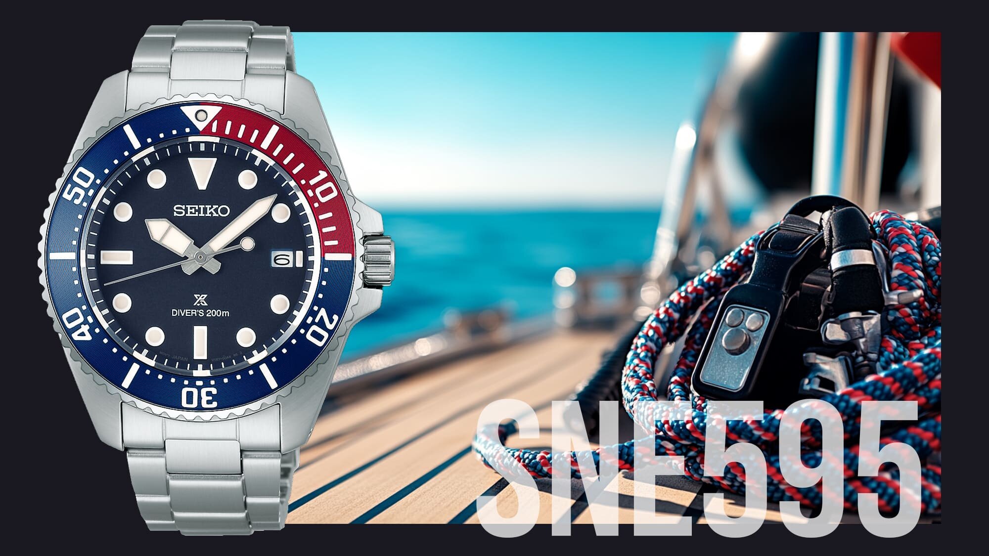 Az SNE595 modell egy népszerű színösszeállításban érkezik, az ismert üdítőitalról kapta a becenevét ez a stílus a kék és piros színeivel, amely a búvárlünettán jelenik meg, míg a számlap sötétkék.