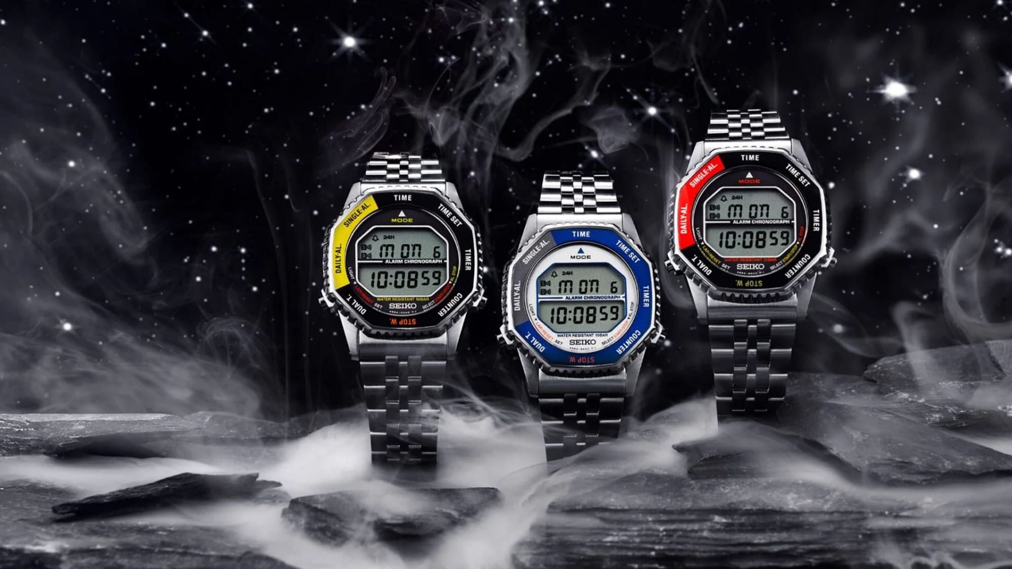 Nem csak a funkciók, de a forma is megegyezik az eredeti modellel, a két alsó nyomógomb elhelyezkedése, az osztott LCD kijelző és a fémszíjas kivitel olyanná teszi a három újdonságot, mintha csak egy időutazás részesei lennénk.