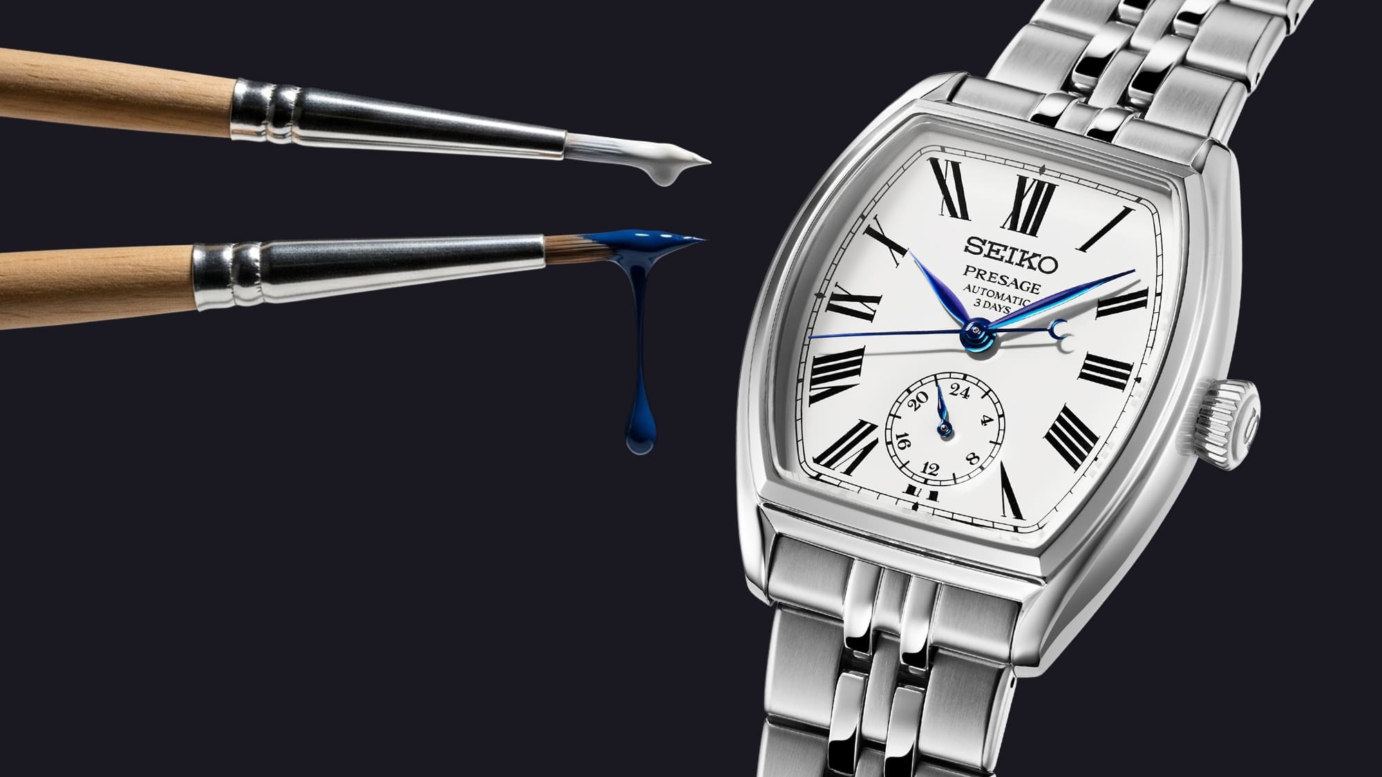 Ismerős a forma, hiszen a Seiko modellek között is találhattunk korábban hordó forma modelleket, ismerős a számlap, hiszen éppen most érkeztek meg a Seiko 145. évfordulójára megjelent újdonságok is, amelyek között szintén található egy zománc technikával készülő számlap is, és ismerős a stílus, hiszen a római számos számlap, a hat óránál elhelyezett 24 órás segédszámlap és a kék színű mutatók is mind a klasszikus stílusban készülő modellek sajátjai voltak eddig is a Presage sorozat mechanikus mesterművei között.
