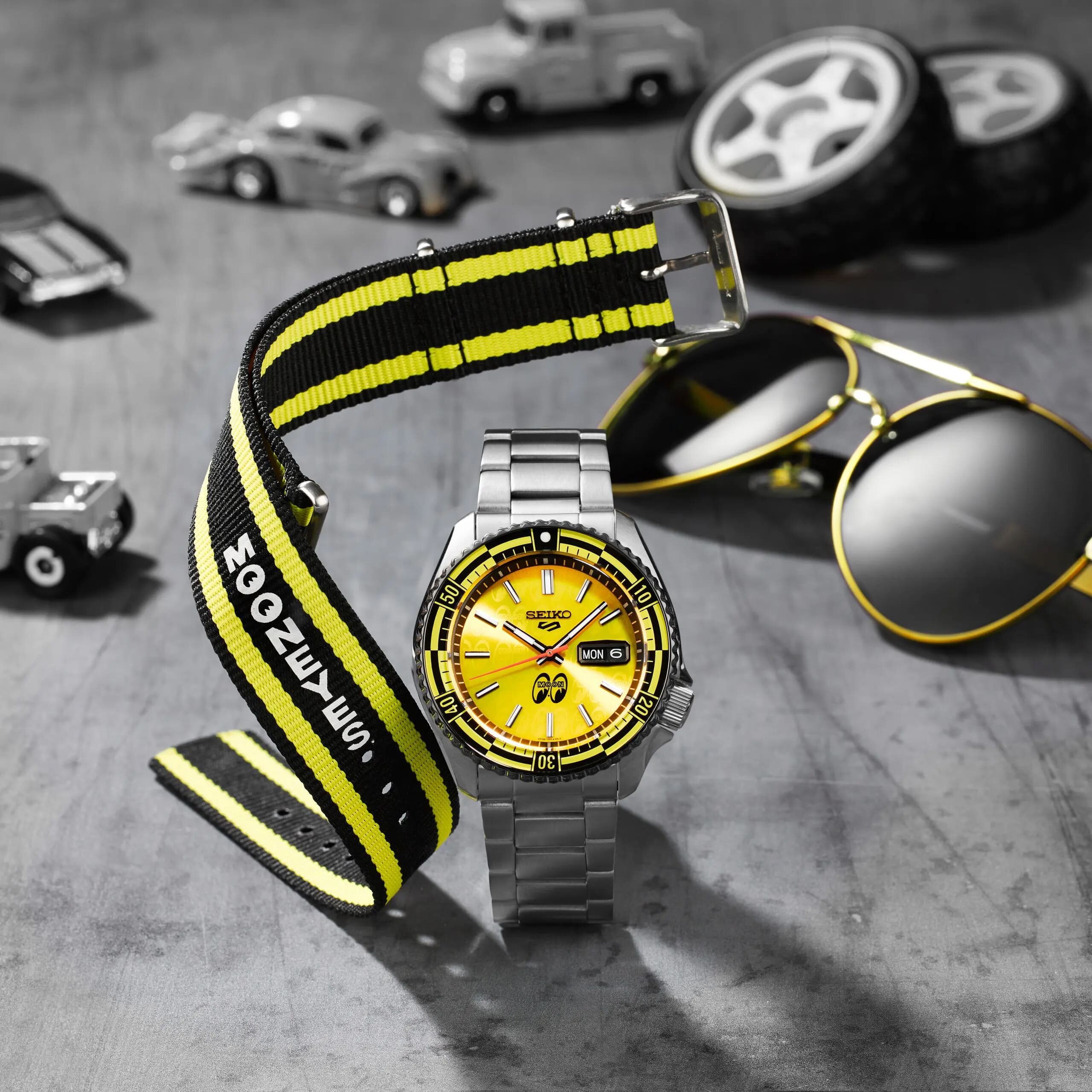 Az óra legjellegezetesebb eleme a színvilága, a fekete-sárga színösszeállítása a Mooneyes világát idézi, míg a design a Seiko 5 Sports korábbi sikeres modelljeinek kockás stílusában készült.