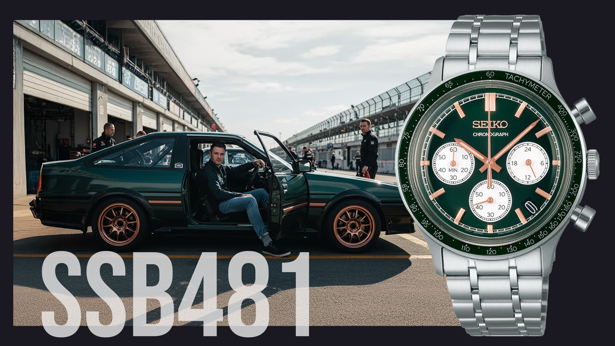Az SSB481P1 modell a sportos elegancia felé hajlik inkább, a sötétzöld számlap a fehér segédszámlapokkal és a rózsaarany színű mutatókkal, indexekkel a kifinomultabb darabokat kedvelők kedvence lehet. A mutatók és az indexek természetesen Lumibrite festét kaptak, így sötétben is jól leolvashatóvá teszik az órát.