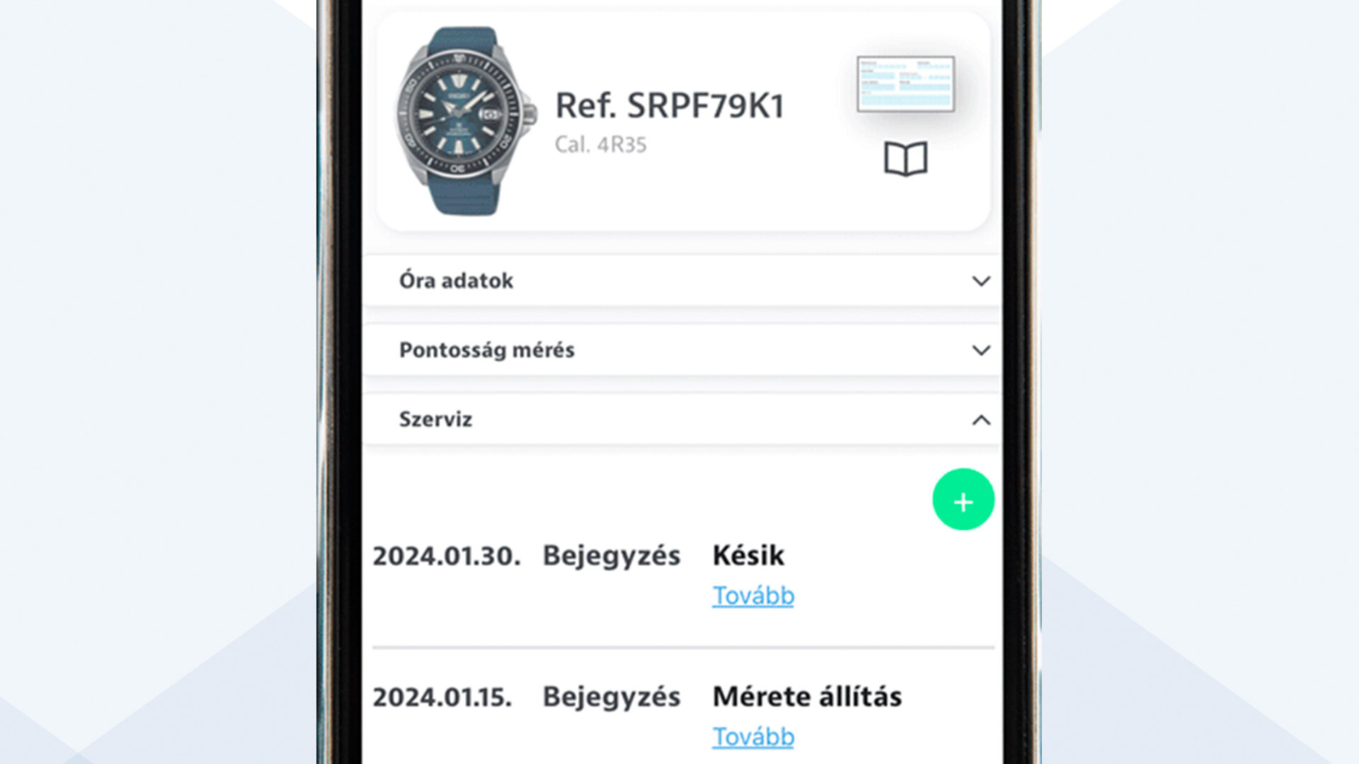 Itt olvashatók az óra legfontosabb adatai is, mint a vásárlás helye és ideje, a sorozatszám, vagy a következő felülvizsgálat tervezett ideje. Ezen a felületen is lehetőség van a pontosságmérés elindítására, valamint itt találjuk a szervizmúltat is, amit fentebb részleteztünk.