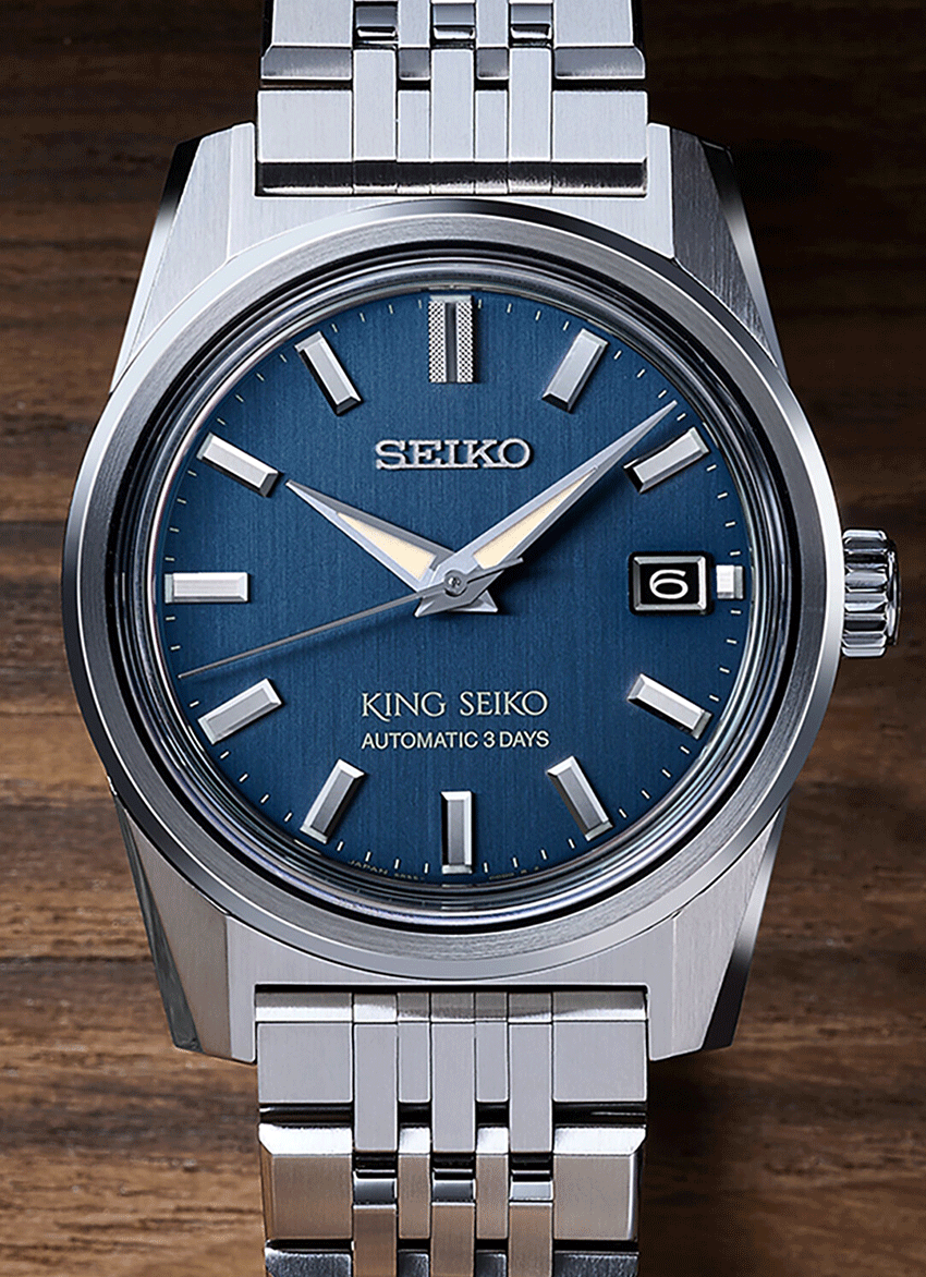 Az új King Seiko sorozat megjelenése tökéletesen hozza vissza a hatvanas-hetvenes évek érzéseit, ebben segít a 44KS stílusába készülő tok formája éppúgy, mint a fémszíj kialakítása. A nemesacél tok és szíj szálhúzott felülete is a vintage hangulatot erősíti. A King Az SPB373J1 számlapjának zöld színe egyszerre érdekes és egy kicsit más, mint a megszokott számlap színek, mégis mára teljesen elfogadott a zöld minden árnyalata s számlapoknál. Az SPB371J1 mérete, melynek tokátmérője 39 mm lehetővé tette egy plusz komplikáció megjelenítését is a számlapon, így mostantól dátumablakot is találunk a King Seiko-n. Ehhez természetesen szükség volt egy új kaliberre is. 6R55 szerkezet érdekessége a dátum komplikációja mellett a megnövelt, 72 órás járástartalék, amely a számlapon is feltüntetésre került egy kis játékkal - a 72 óra helyett a stílusosabb “3 Days”, vagyis “3 nap” felirat található.