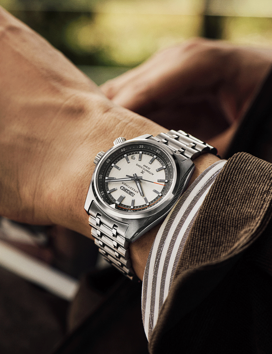 A jellegzetes forma nem véletlenül ismerős, hiszen a hetvenes évek klasszikus formája köszön vissza benne, érdekessége, hogy ez a modell a 39.5 mm-es átmérőjével és a 12.0 mm-es vastagságával az eddigi legvékonyabb óra, amely 6R kaliberrel készült. Ami még különlegesebb és valóban ritkaságszámba megy az órák világában, az a második koronával vezérelhető belső lünetta. 4 óránál elhelyezett koronával az üveg alatt található lünettát forgathatjuk, amely funkcióját tekintve egy visszaszámláló lünetta, 60 perctől lehet vele mérni a visszalévő időt, ami egy autóversenyen általában tökéletesen elegendő. AZ SPB513J1-ben a 6R kalibercsalád tagját, egészen pontosan a 6R55 szerkezetet találjuk, amely 72 órás, vagyis 3 napos járástartalékkal bír, és egy dátum komplikációval, amelyet a 4 és 5 óra között elhelyezett kerek dátumablakban találunk.