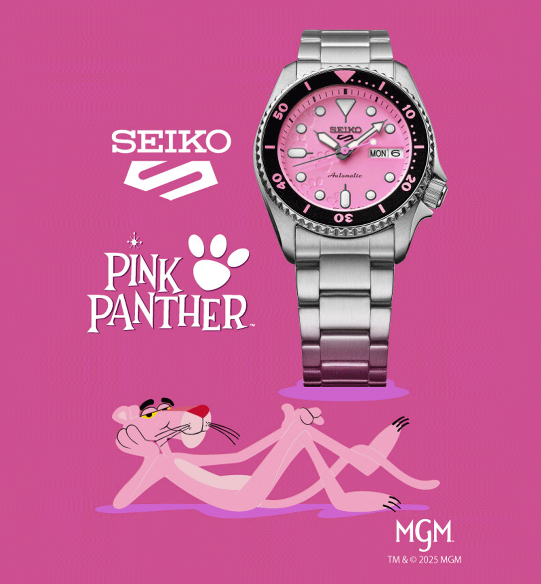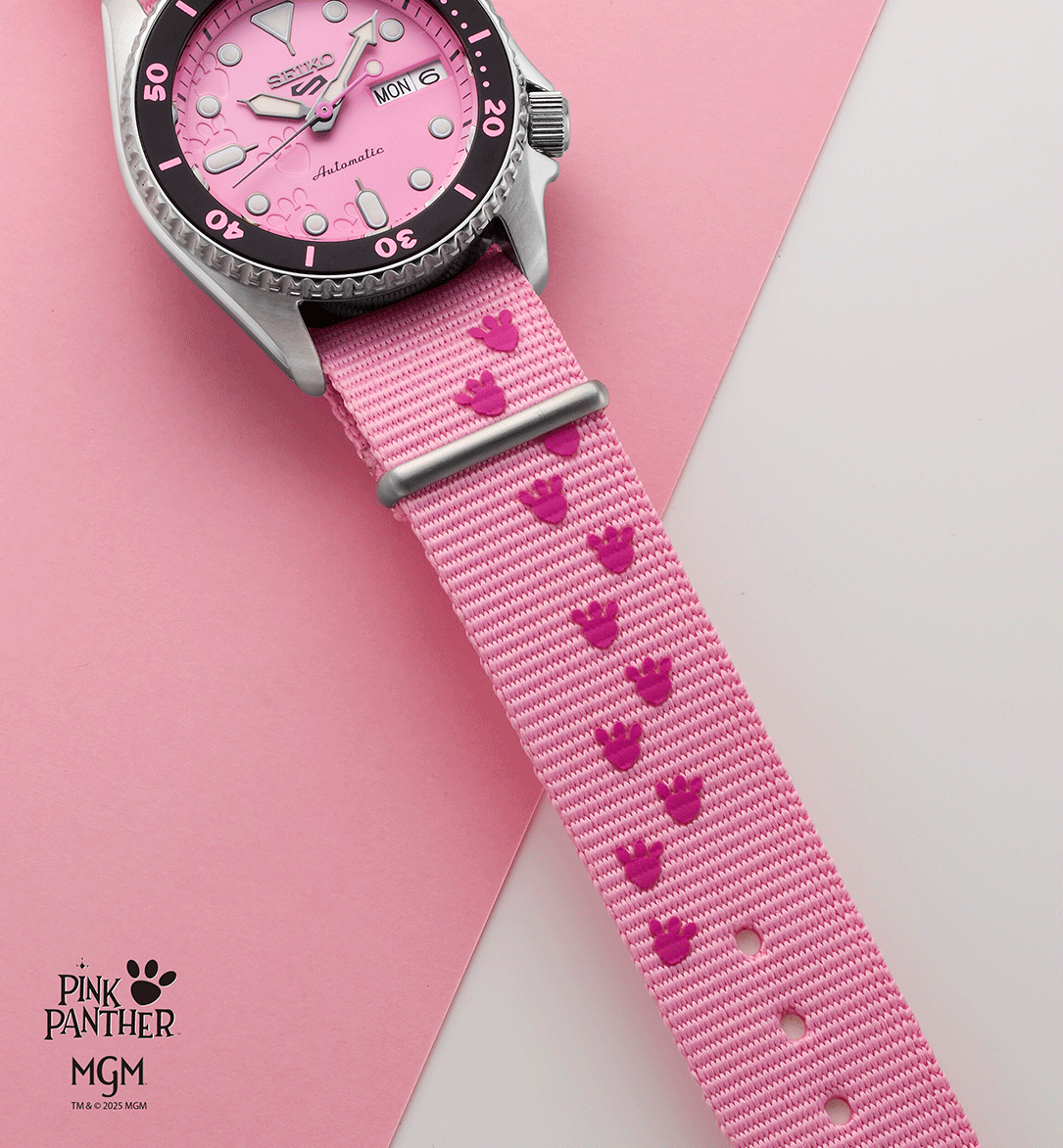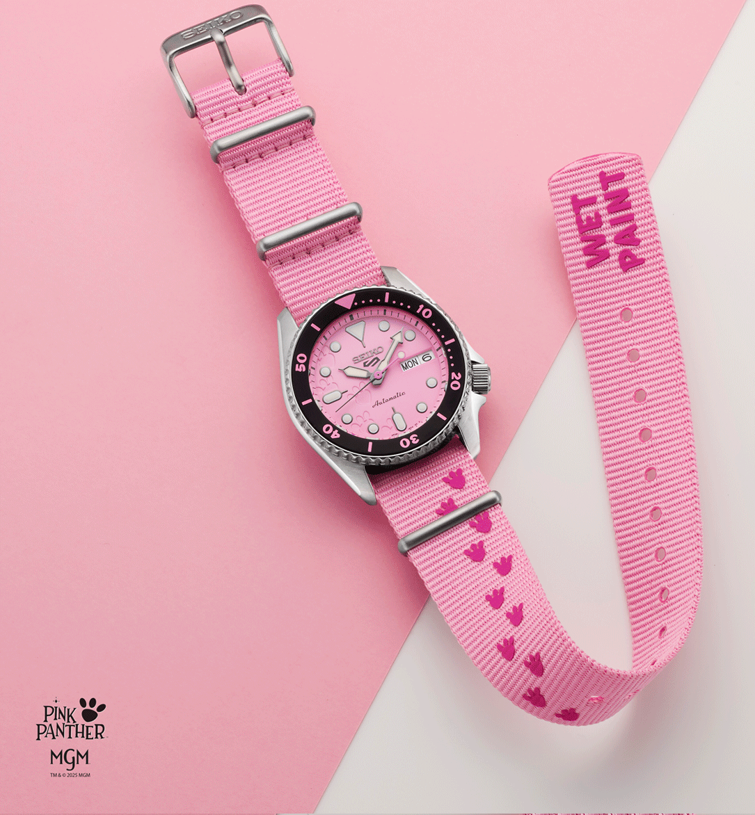 A Seiko 5 Sports x Pink Panther SRPM07K1 egy különleges, limitált kiadású modell, amely a generációk óta ikonikus Rózsaszín Párduc előtt tiszteleg. A rajzfilmek világából ismert karakter most egy színpompás Seiko 5 Sports órán jelenik meg, amely nem csupán a rózsaszín színével hívja fel magára a figyelmet, hanem a részleteiben is tudatos utalásokat hordoz a Pink Panther legendás világára. Az óra az első, Oscar-díjas Pink Panther rajzfilm epizód hangulatát idézi meg, finom, játékos motívumokkal. A modell a Seiko 5 Sports kollekció jól ismert, SKX ihlette tokformáját kapta meg, aszimmetrikus kialakítással, karakteres koronavédővel és búvárlünettával. A 38 mm-es tokátmérő a modern óraipari méretcsökkentési trendhez igazodik, így az óra valódi uniszex darabként viselhető: ideális választás hölgyeknek, valamint a kisebb méretű órákat kedvelő férfiak számára is. A rózsaszín számlapon közelebbről megfigyelve felfedezhetők a Pink Panther lábnyomai, miközben az összkép megőrzi a klasszikus Seiko búvárórákra jellemző kerek indexeket, jól olvasható mutatókat és sportos karaktert. A búvárlünetta számozása és színe szintén játékos megoldásokat kapott, természetesen a karakterhez illő rózsaszín árnyalatban. Az üvegbetétes, menetes hátlap különleges grafikát rejt: Pink Panther szemei tűnnek fel, ahogy beleolvad a rózsaszín háttérbe, kiegészítve az ikonikus Pink Panther logóval. A modell világszerte mindössze 9 999 darabban készül, így valódi gyűjtői értéket képvisel. A csomag része egy ajándék rózsaszín NATO szövetszíj is, amelyen újra megjelennek a párduc lábnyomai és a rajzfilmből ismert „Wet paint” felirat. A limitált kiadáshoz egyedi, tematikus doboz is tartozik, amely szintén a Pink Panther világát idézi. A Seiko 5 Sports x Pink Panther SRPM07K1 azoknak készült, akik nem félnek a színektől, értékelik a klasszikus popkulturális utalásokat, és egy igazán különleges, mégis mindennap viselhető Seiko órát keresnek.