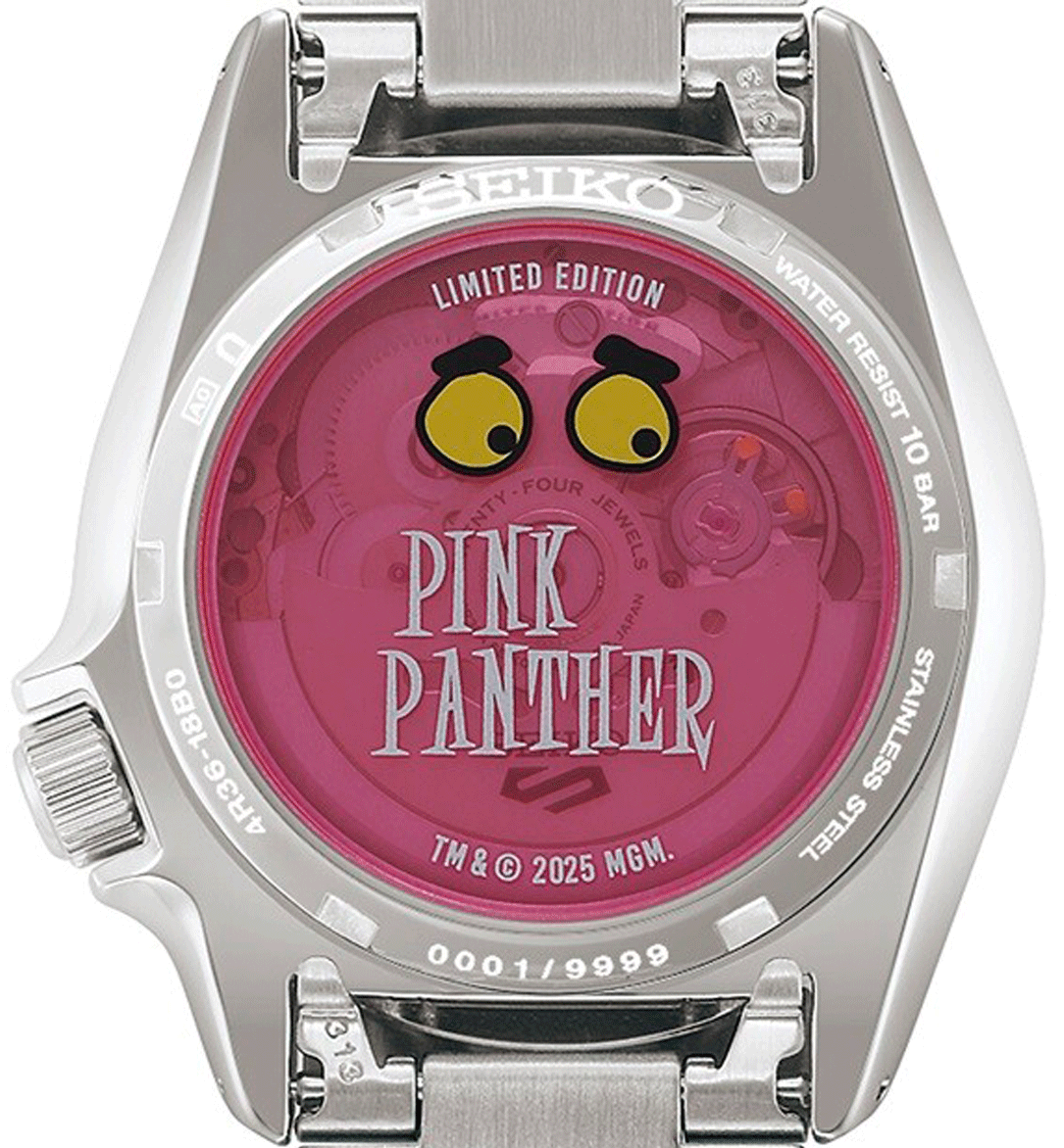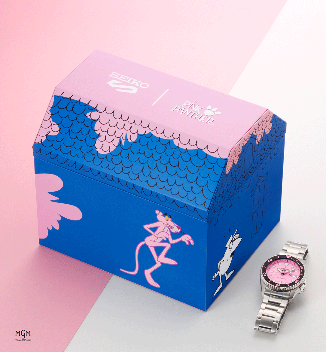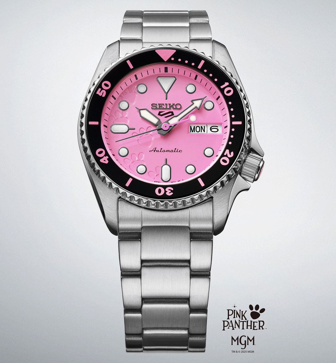 A Seiko 5 Sports x Pink Panther SRPM07K1 egy különleges, limitált kiadású modell, amely a generációk óta ikonikus Rózsaszín Párduc előtt tiszteleg. A rajzfilmek világából ismert karakter most egy színpompás Seiko 5 Sports órán jelenik meg, amely nem csupán a rózsaszín színével hívja fel magára a figyelmet, hanem a részleteiben is tudatos utalásokat hordoz a Pink Panther legendás világára. Az óra az első, Oscar-díjas Pink Panther rajzfilm epizód hangulatát idézi meg, finom, játékos motívumokkal. A modell a Seiko 5 Sports kollekció jól ismert, SKX ihlette tokformáját kapta meg, aszimmetrikus kialakítással, karakteres koronavédővel és búvárlünettával. A 38 mm-es tokátmérő a modern óraipari méretcsökkentési trendhez igazodik, így az óra valódi uniszex darabként viselhető: ideális választás hölgyeknek, valamint a kisebb méretű órákat kedvelő férfiak számára is. A rózsaszín számlapon közelebbről megfigyelve felfedezhetők a Pink Panther lábnyomai, miközben az összkép megőrzi a klasszikus Seiko búvárórákra jellemző kerek indexeket, jól olvasható mutatókat és sportos karaktert. A búvárlünetta számozása és színe szintén játékos megoldásokat kapott, természetesen a karakterhez illő rózsaszín árnyalatban. Az üvegbetétes, menetes hátlap különleges grafikát rejt: Pink Panther szemei tűnnek fel, ahogy beleolvad a rózsaszín háttérbe, kiegészítve az ikonikus Pink Panther logóval. A modell világszerte mindössze 9 999 darabban készül, így valódi gyűjtői értéket képvisel. A csomag része egy ajándék rózsaszín NATO szövetszíj is, amelyen újra megjelennek a párduc lábnyomai és a rajzfilmből ismert „Wet paint” felirat. A limitált kiadáshoz egyedi, tematikus doboz is tartozik, amely szintén a Pink Panther világát idézi. A Seiko 5 Sports x Pink Panther SRPM07K1 azoknak készült, akik nem félnek a színektől, értékelik a klasszikus popkulturális utalásokat, és egy igazán különleges, mégis mindennap viselhető Seiko órát keresnek.
